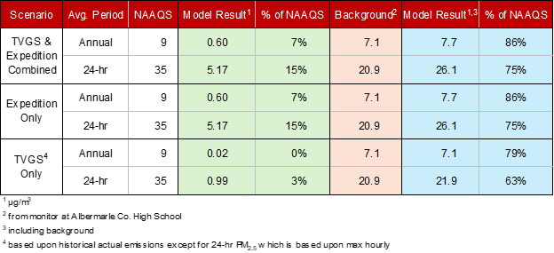 Air quality impacts will be assessed via the air permit application, which will include extensive modeling to predict ground-level concentrations of numerous pollutants from not only Expedition but from other surrounding sources (including the existing plant) as well as monitored background concentrations. The cumulative concentrations will then be compared to ambient standards, which are set by the U.S. Environmental Protection Agency to be protective of human health and the environment. Virginia Department of Environmental Quality (VDEQ) will spend months reviewing the application and will issue a permit only if all requirements are met.